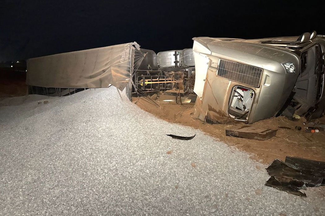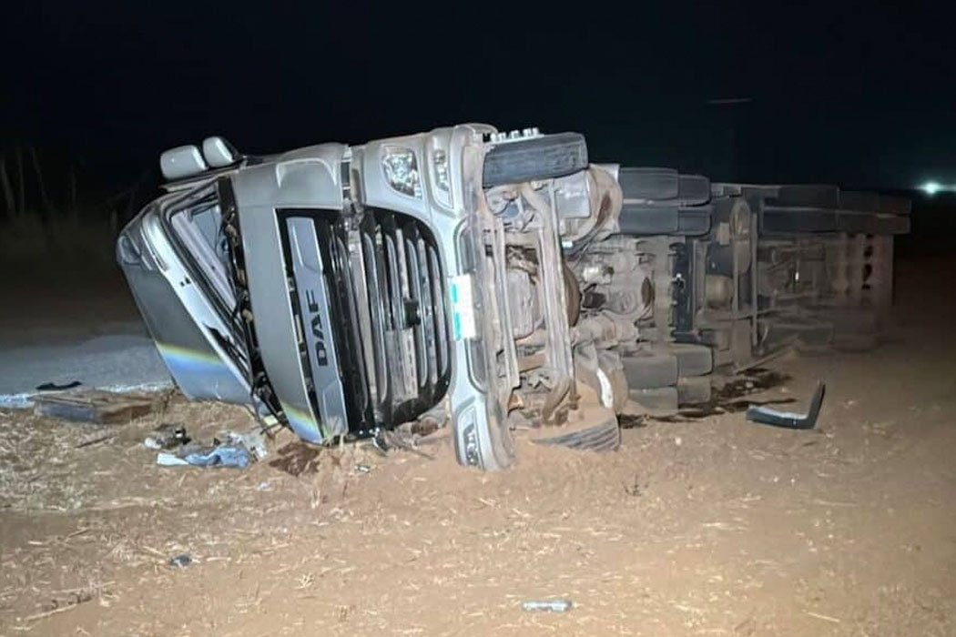 Uma carreta carregada com pedras britas tombou no início da noite deste domingo (13) em um trecho da rodovia federal entre Sorriso e Lucas do Rio Verde. O motorista foi socorrido pela equipe de resgate da concessionária responsável pela rodovia e encaminhado ao hospital regional, mas seu estado de saúde ainda não foi divulgado.