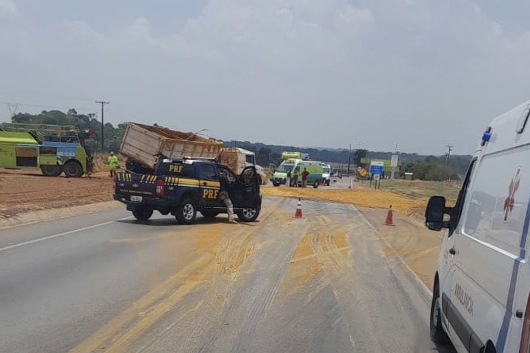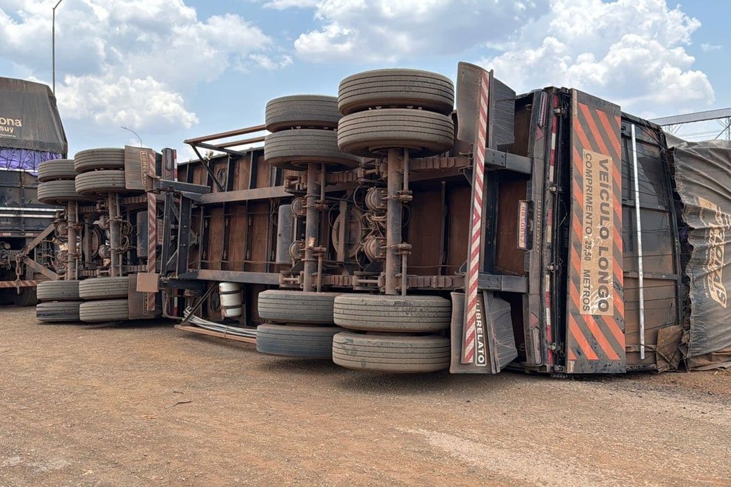 Pouco antes, por volta das 11h, outra carreta, desta vez uma DAF 540 preta com placas do Brasil, também tombou em Sorriso. O motorista saiu ileso e o tombamento foi registrado na faixa de domínio da rodovia.