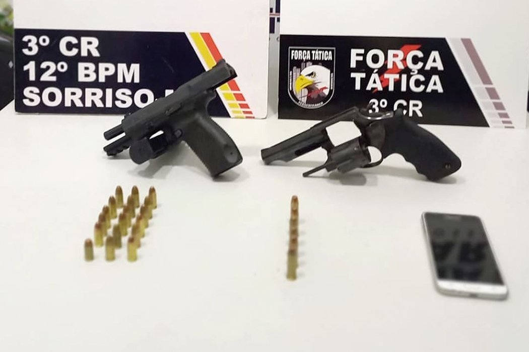 Armas apreendidas com os suspeitos | Créditos: Força Tática da Polícia Militar em Sorriso