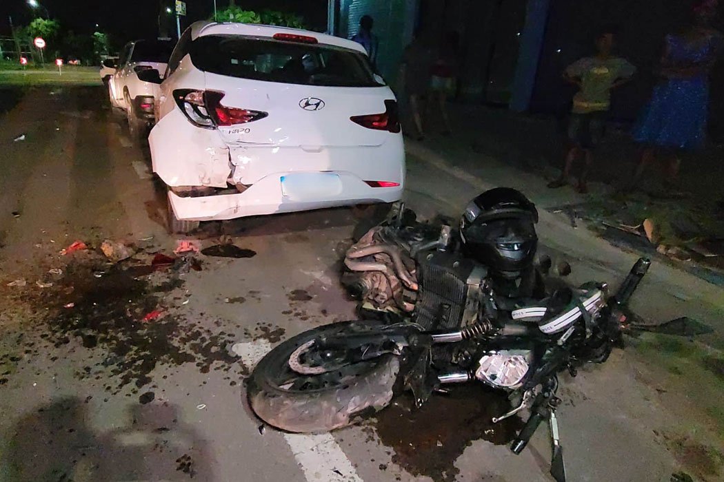 Um motociclista ficou ferido na noite desta sexta-feira (11) depois de se envolver em um acidente na avenida das Palmeiras, em Sinop. Ele pilotava uma Yamaha MT 07 e colidiu inicialmente com a lateral de um GM Ônix branco.